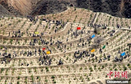 慶陽市西峰城區職工春季義務植樹現場。 (資料圖) 徐亞東 攝