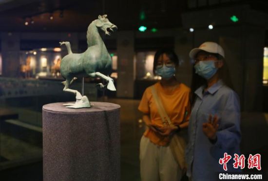 2020年5月18日,游客參觀銅奔馬。當(dāng)天是國際博物館日,游客來到位于甘肅蘭州的甘肅省博物館有序參觀,感受絲路文明。(資料圖) 高展 攝