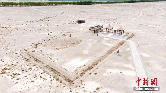 嘉峪關(guān)新城魏晉墓群六號(hào)墓是一座典型的三室墓,由前、中、后三個(gè)墓室組成。圖為7月中旬,六號(hào)墓航拍圖。高展 攝