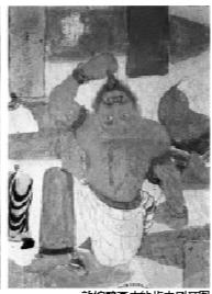 這幅壁畫(huà)講了這樣一個(gè)故事:外道勞度叉,約佛教弟子舍利弗斗法,失敗的一方要么選擇自盡,要么放棄原有的信仰而皈依佛門。經(jīng)過(guò)一番殊死搏斗,失敗后的外道,向舍利弗投降跪拜。