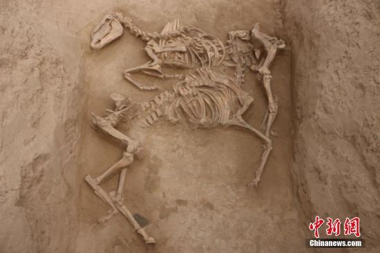 12月14日,甘肅省文物局發(fā)布該省武威地區(qū)唐代吐谷渾王族墓葬群最新考古研究成果。圖為長(zhǎng)嶺M1墓道殉馬。 中新社發(fā) 甘肅省文物局 供圖