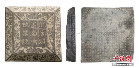 12月14日,甘肅省文物局發(fā)布該省武威地區(qū)唐代吐谷渾王族墓葬群最新考古研究成果。圖為慕容智墓墓志及志側(cè)文字。 中新社發(fā) 甘肅省文物局 供圖