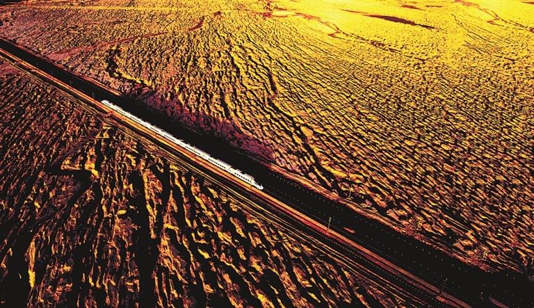 “環西部火車游”穿越敦煌雅丹地貌區。