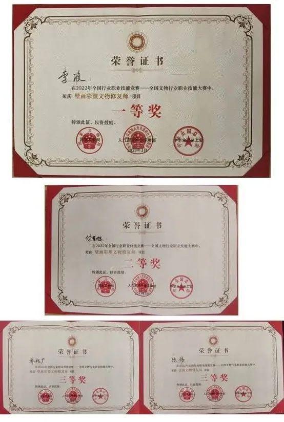 甘肅省共選派11名選手參加了壁畫彩塑文物修復師、金屬文物修復師等6個項目所有比賽,選手們經過14個小時的精心修復,用匠心妙手讓沉睡已久的文物重獲新生。經大賽組委會評議,甘肅省敦煌研究院李波、付有旭、喬兆廣等3名選手分別榮獲壁畫彩塑文物修復師項目一等獎、二等獎和三等獎,甘肅省文物考古研究所張偉榮獲金屬文物修復師項目三等獎。