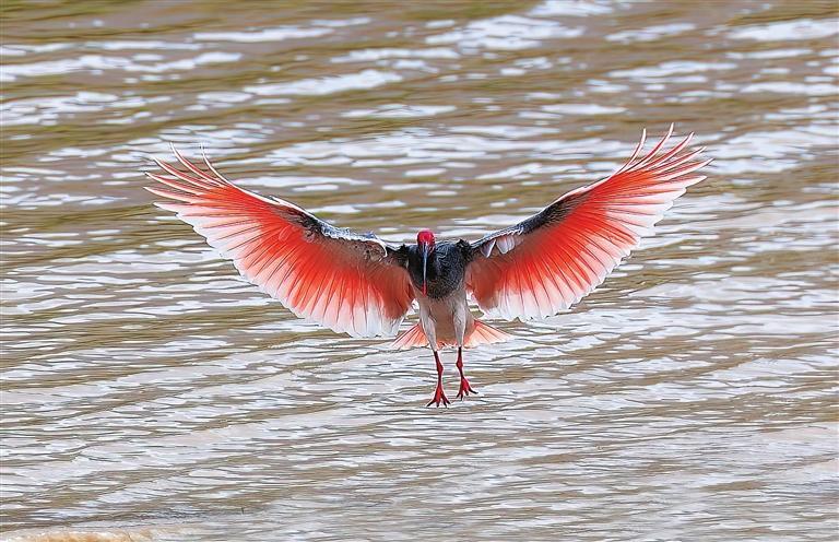 朱鹮曾在國內消失10多年,1981年5月,鳥類專家在陜西洋縣發現7只朱鹮,目前朱鹮種群數量7000余只。