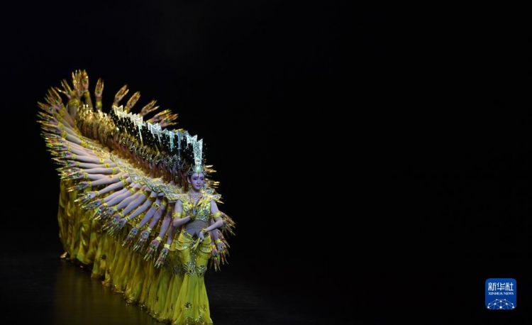 中國殘疾人藝術(shù)團演員在敦煌大劇院表演大型情景音畫劇《千手千眼》(6月18日攝)。