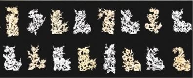 所剪的梅花枝干千姿百態,變化多端,有粗有細、有長有短。梅花花朵有大有小,有的含苞未放,有的正在盛開。所剪的喜鵲也是形態多樣,有的在枝頭歡唱,有的在花間飛翔,有的竊竊私語,有的比翼雙棲,給人以喜氣又可愛的視覺效果。共分為8幀圖卷,分別為《寒梅吐艷》《喜梅報春》《一門喜事》《雙喜盈門》《喜事連連》《梅開五福》《登高望遠》《喜上眉梢》。