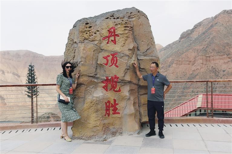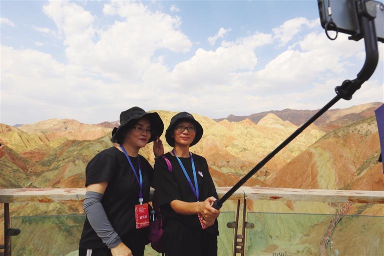 “這里綿延分布的彩色丘陵,好似與天際線融為了一體,勝似彩虹垂天。”王笑君是一名律師,平日里緊張忙碌的工作,總讓他不由自主有一種想逃離城市喧囂、回歸自然懷抱的愿望,機緣巧合之下他便選擇了水墨丹霞。他感慨地說:“真是挺難忘的,一眼望去,那五顏六色在陽光下濃烈的交織在一起,好似一幅無邊無際的潑墨山水,美不勝收。”