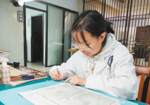 圖為安雅楠在修復(fù)古籍。本報(bào)記者 宋朝軍攝
