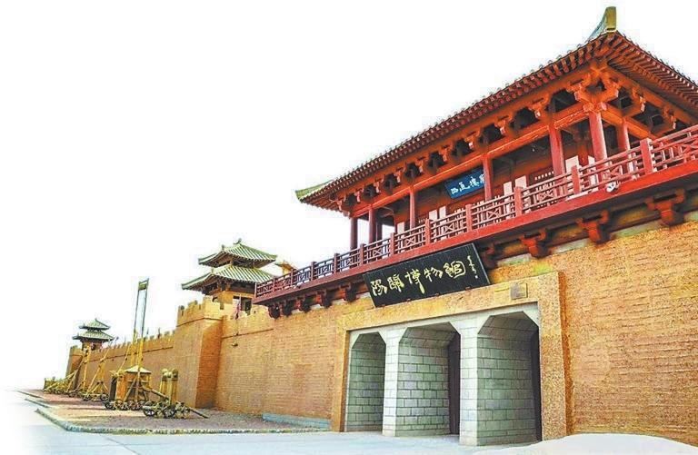 在戈壁深處,古陽關烽燧腳下,坐落著一座占地10萬平方米、館內面積7.8萬平方米、建筑面積1.6萬平方米的博物館——陽關博物館,它依托古陽關星羅棋布的歷史遺跡和豐富深厚的文化底蘊,以館園結合的方式,向游客展示古代邊關軍事文化和絲綢之路文化遺跡,使其成為絲綢之路上的重要景點,同時也成為西部重要的文化地標。景區內修建了一些仿漢代的城樓建筑,還設置了多個展廳,展示了古絲綢之路上的眾多文物。陽關因著名古詩“勸君更盡一杯酒,西出陽關無故人”而名揚天下。