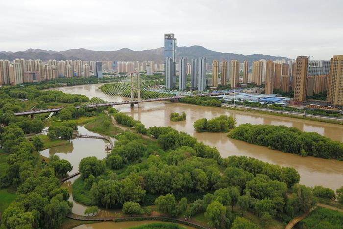 黃河蘭州段及兩岸景象。新華社記者 范培珅 攝