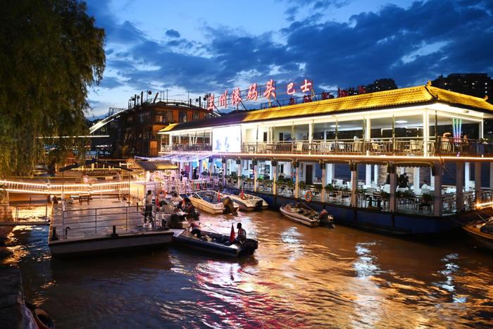 夜晚的蘭州港碼頭。新華社記者 范培珅 攝