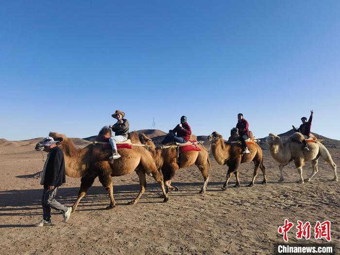 圖為留學(xué)生在陽關(guān)景區(qū)體驗乘騎駱駝。劉玉桃 攝