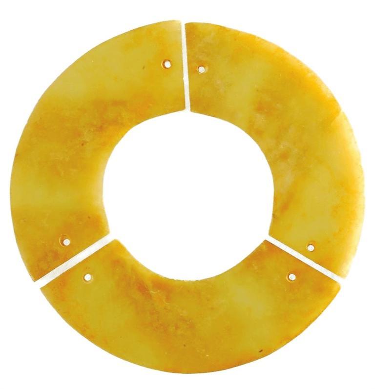 玉璜,是一種佩戴飾物。在中國古代與玉琮、玉璧、玉圭、玉璋、玉琥等,被人們認為是“六器禮天地四方”的玉禮器。《周禮》記載:“以玉作六器,以禮天地四方:以蒼璧禮天,以黃琮禮地,以青圭禮東方,以赤璋禮南方,以白琥禮西方,以玄璜禮北方。”六器之中的玉璜、玉琮、玉璧、玉圭等四種玉器,歷史最悠久,早在新石器時代就已出現,是玉組佩組成部分,由不同種類玉飾穿綴而成,結構和形式復雜,在不同時期和地域玉組佩更是演變出了不同的款式。此外,玉璜從新石器時代早期開始一直是女性的象征,并僅限于個人飾件體現其社會地位的象征性。步入良渚時期后,琮、璧和鉞開始超越個人飾件的范疇,成為重要的社會權力象征,標志著社會復雜化進程加速,社會成員的地位、等級和財富分化明顯加劇。