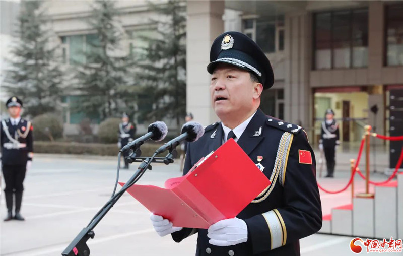 中國甘肅網1月10日訊(本網記者 程健)1月10日,蘭州市公安局舉行升警旗儀式,熱烈慶祝第三個中國人民警察節,進一步激勵全警深入學習宣傳貫徹黨的二十大精神,牢記初心使命、堅定從警信念,匯聚向高而攀、向新而生、向遠而行的磅礴力量,推動新時代蘭州公安高質量發展,為全面建設社會主義現代化國家、全面推進中華民族偉大復興保駕護航。省公安廳副廳長、蘭州市副市長、市公安局黨委書記、局長王立朝出席并講話。
