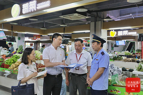 圖為南京市棲霞區紀委監委針對“陽光惠民”監管平臺上的預警信息,組織力量核查該區星級農貿市場獎勵資金撥付方面的問題線索。