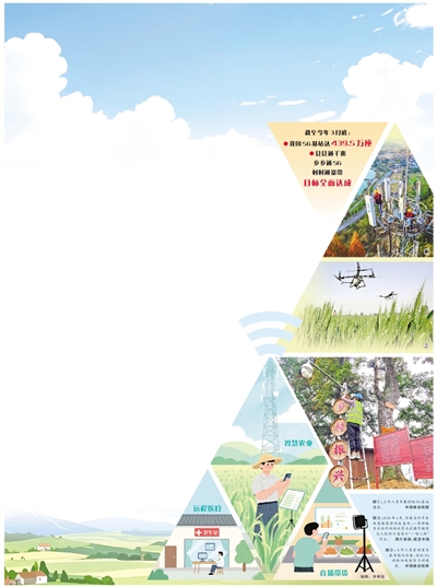 從2019年6月正式發(fā)放5G商用牌照,到如今建成全球規(guī)模最大、技術(shù)領(lǐng)先的光纖和移動通信網(wǎng)絡(luò),近年來,我國5G新基建跑出“加速度”,特別是隨著5G通信網(wǎng)絡(luò)不斷向基層延伸,農(nóng)村地區(qū)互聯(lián)網(wǎng)普及率穩(wěn)步提升。如今,我國行政村通5G的比例已達90%,提前完成了《“十四五”信息通信行業(yè)發(fā)展規(guī)劃》中“到2025年實現(xiàn)行政村5G通達率達到80%”的目標。在5G的助力下,農(nóng)業(yè)生產(chǎn)信息化率顯著提高,數(shù)字鄉(xiāng)村建設(shè)邁上新臺階,一些曾經(jīng)不敢想的畫面,如今已成為許多鄉(xiāng)村的日常情景。在村衛(wèi)生室接受省三甲醫(yī)院的專家遠程診療,在手機APP上遠程查看田間作物長勢,運用線上直播帶動農(nóng)產(chǎn)品“出圈”……5G深度融入鄉(xiāng)村的生產(chǎn)、生活之中,為鄉(xiāng)村振興賦能。