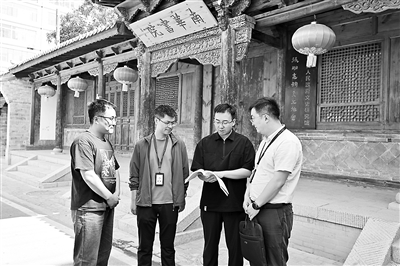 甘肅省張掖市紀委監(jiān)委聚焦文物文化遺址保護、規(guī)劃審批、資金撥付使用等關(guān)鍵環(huán)節(jié),強化日常監(jiān)督。圖為該市紀檢監(jiān)察干部在甘州區(qū)西來寺巷歷史文化街區(qū)了解有關(guān)情況。王夢婷 攝