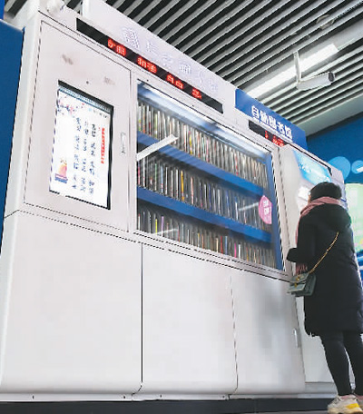 市民在湖南長沙侯家塘地鐵站的“24小時自助圖書館”借閱圖書。 新華社記者 陳澤國攝