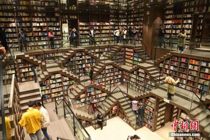 資料圖:重慶九龍坡區(qū)商圈內,一書店因設計感非常獨特,吸引了不少民眾前來打卡玩耍。陳超 攝