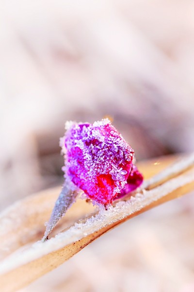 在山東省淄博市高青縣,掉落的花瓣沾滿冰霜。新華社發(fā)