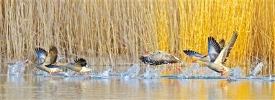 張玉林告訴記者,近年來張掖市高度重視生態文明建設,采取有效措施改善保護生態環境。通過采取退耕還濕、植被恢復、生態補水、圍欄封育、棲息地恢復、生態環境整治等措施,有效促進了濕地生態系統的保護和恢復,為鳥類遷徙、繁衍提供了良好的生存環境。由于濕地恢復,甘州區近年來又在濕地清淤中堆積了許多無人島,這里成了黑翅紅腳鷸、燕鷗的繁殖地。黑鸛、天鵝、白琵鷺在張掖數量較多,經常可見種群活動。國家一級保護動物白尾海雕、玉帶海雕等珍稀動物也常來光顧。