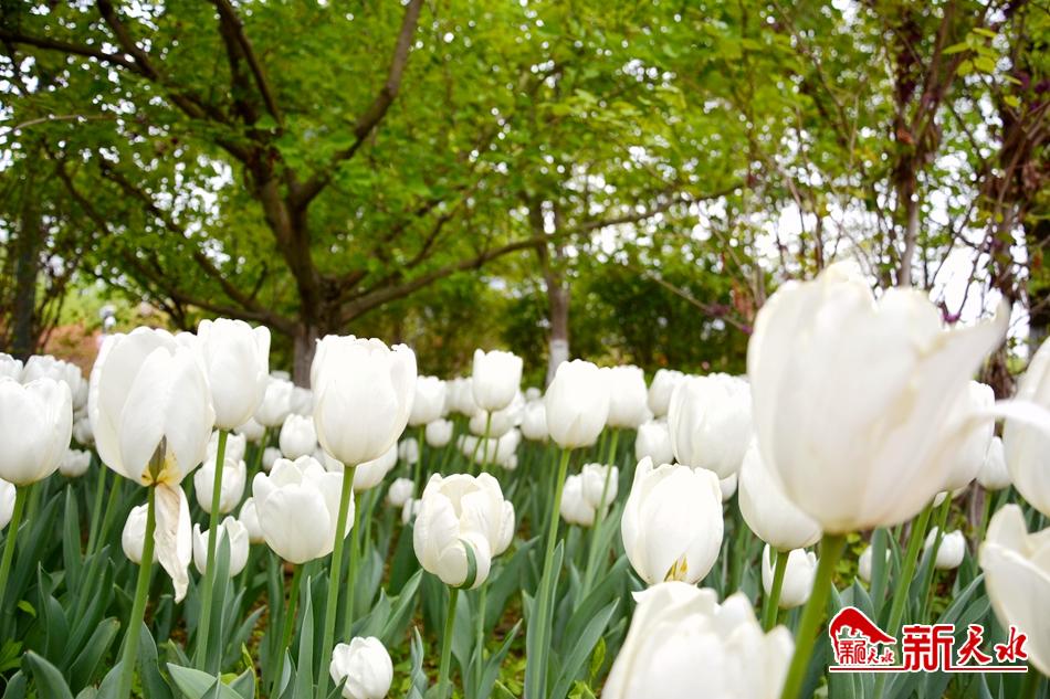 在經歷了一個漫長的嚴冬之后,馬跑泉公園的25萬余株郁金香和5萬余盆各類時令鮮花在麥積大地上郁郁蔥蔥的綻放著。