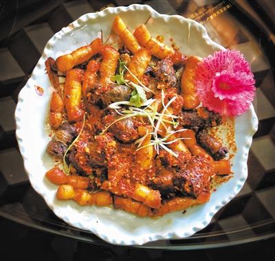 一個小時的不停翻炒,這道菜終于可以出鍋了。色澤紅亮誘人、飄散著濃濃香氣的爆炒草雞,怎能不受食客的青睞?