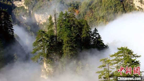 圖為險峻山峰間云霧繚繞?!●R天云 攝