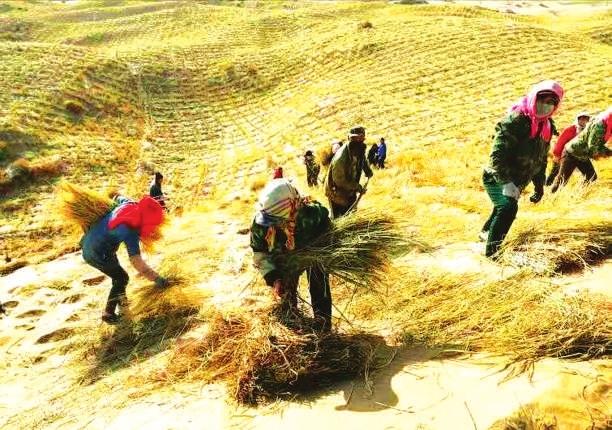 八步沙人治沙的場景