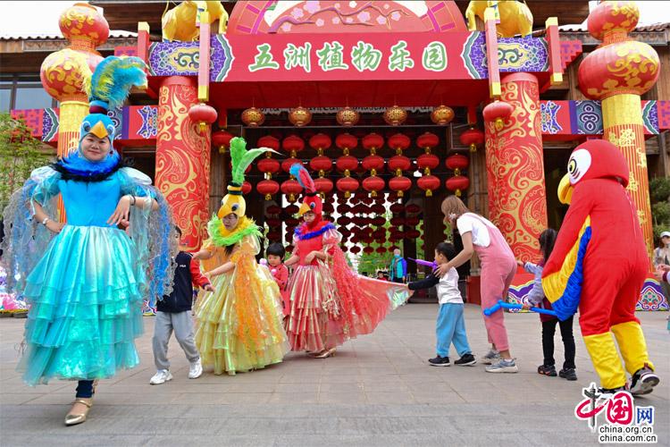 同期進行的文化演藝活動,今年在內容上也更加豐富,除了傳統地道的玲瓏舞龍獅、威風鑼鼓、民族春花漫舞秀、木蘭扇秀、氣勢磅礴的腰鼓等,還增添了小朋友喜愛的趣味小丑專場表演、卡通人偶巡游、南宮曉樂隊演出,大小朋友還可以一起動手體驗扎染和茶道的樂趣。此外,在南宮古風市集中,漢服愛好者既可拍照打卡,又能挑選琳瑯滿目的國潮商品和小吃,盡享國風游園的春之韻。