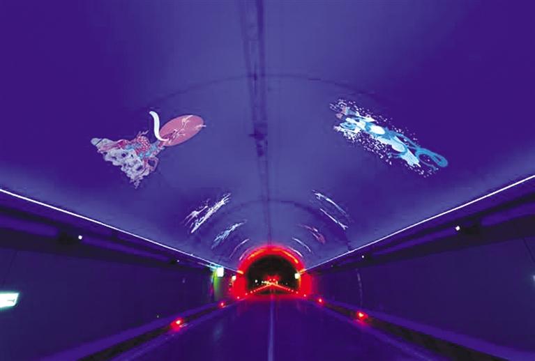 景觀照明系統主體效果充分融合甘肅文化特色,采用“飛天壁畫”“沙漠駝隊”等元素,利用洗墻燈襯托底色,投影燈展現景觀效果,實現為司乘人員打造人在畫中游的視覺感官,有效解決隧道內長時間駕駛的視覺疲勞和情緒波動,提升司乘人員駕駛舒適度。