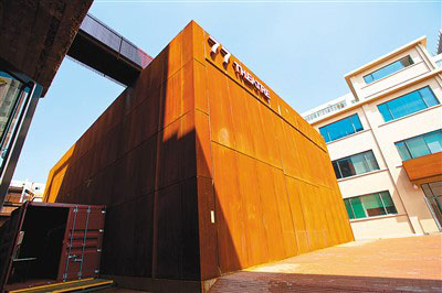 沿著園區里迂回旋轉的鋼梯來到樓頂,眼前豁然開朗——與園區一街之隔有中國美術館、三聯書店,向西是北大紅樓舊址,向南是北京人民藝術劇院,向北則是中央戲劇學院。“我們在調研中發現,周邊戲劇、影視資源非常豐富,于是考慮將園區定位與東城區推進‘戲劇之城’建設發展的方向相契合。”77文創園運營方、東方道樸公司總經理李明說。