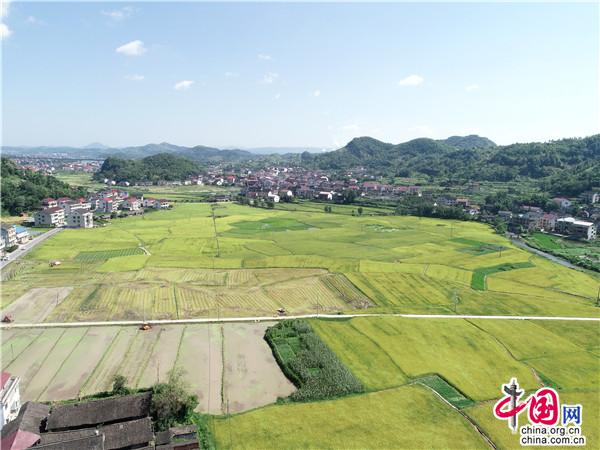 原標題:湖南新邵:早稻進入全面收割階段 田園如詩如畫