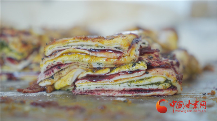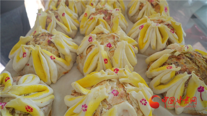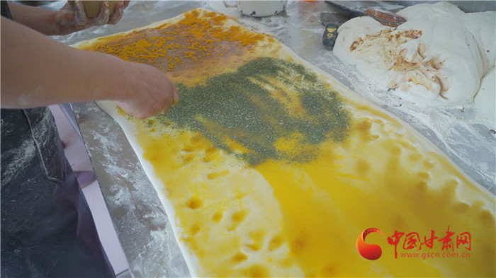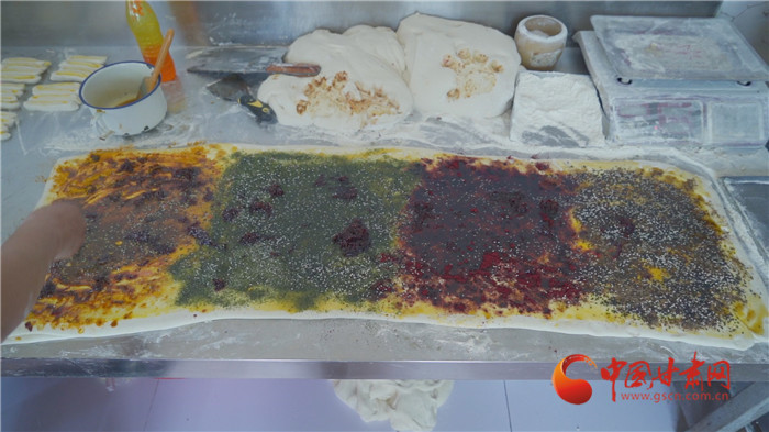 記者走進榆中縣金崖鎮浩燕饅頭店,一股濃濃的胡麻油、玫瑰醬、香豆等混合的香氣撲面而來,李浩燕正在忙碌地趕制一批榆中傳統手工月餅。案板上除了發好的面團,還擺上了炒胡麻碎、姜黃、白砂糖等豐富的佐料。只見李浩燕從揉面開始,然后鋪餡、搟制、卷面、切分、披花,一道道工序一氣呵成。經過一個多小時,新鮮美味的月餅出爐了,切開后,內里豐富,色彩斑斕,咬上一口軟糯可口,回味留香。