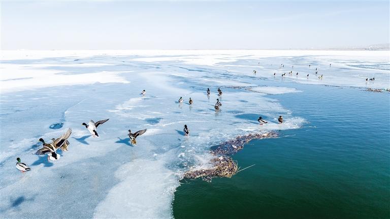 中國甘肅網2月3日訊 據蘭州晚報報道(通訊員 李永華 魏生明 記者 高慧霞 攝)2月2日,位于金塔縣的解放村水庫,越冬候鳥綠頭鴨、赤麻鴨成群結隊。隨著金塔縣生態環境的持續改善和好轉,近幾年過境候鳥數量持續升高,每年冬天都有綠頭鴨、赤麻鴨等鳥類遷徙到解放村水庫等濕地越冬。