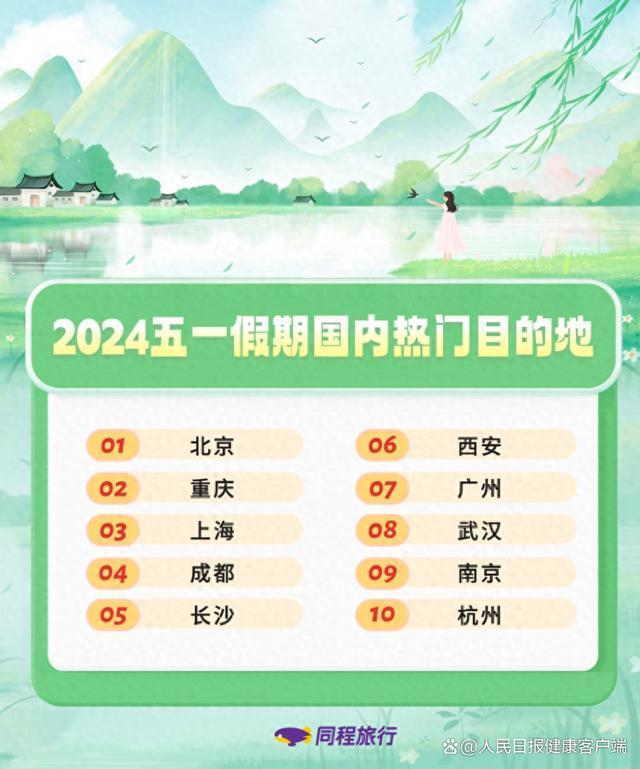國內游方面,人民日報健康客戶端記者結合攜程旅行、途牛等多個旅行平臺公布的熱門目的地發現,截至4月12日,北京、重慶、上海、成都等地的預訂熱度排名靠前。