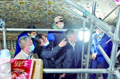 “我們有厚衣服,要不您穿著點(diǎn)?”壁畫(huà)保護(hù)修復(fù)技師柴宗香關(guān)心地問(wèn)記者。