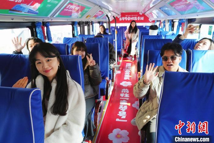 3月16日,武漢文旅城市環游巴士櫻花專線啟動。鄒浩 攝
