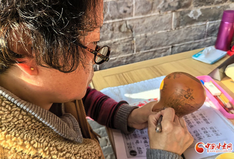 深秋的午后,陳兵手持刻刀,在小小的葫蘆上精雕細(xì)琢,仿佛在與時(shí)光對話,將一個(gè)個(gè)美好的愿景都鐫刻其中。