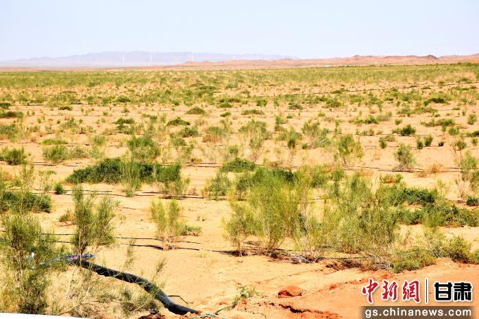 圖為合黎鎮八壩灘借力“中水”栽植的梭梭。